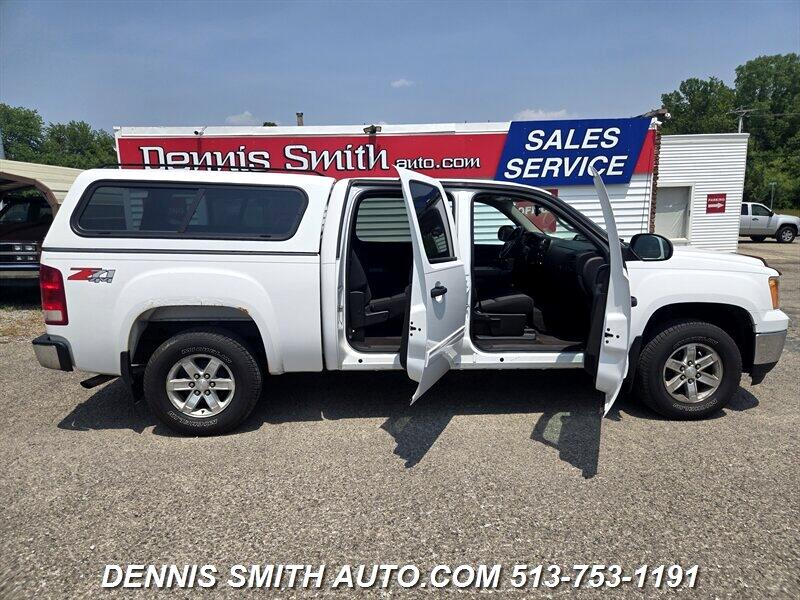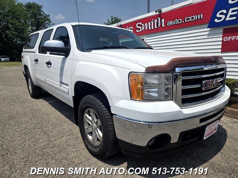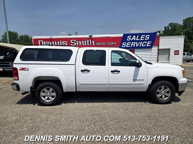 2012 GMC SIERRA 1500 SLE, 4X4, CREW CAB, CAP, NICE RUNNING AND DRIVING SIERRA DENNIS SMITH AUTO.COM -- INSTALLED FEATURES: Front air conditioning: automatic climate control, Front air conditioning zones: single, Airbag deactivation: occupant sensing passenger, Front airbags: dual, Side airbags: front, Side curtain airbags: front / rear, In-Dash CD: MP3 Playback, Radio: AM/FM, Radio data system, Satellite radio: SiriusXM, Speed sensitive volume control, Total speakers: 6, ABS: 4-wheel, Braking assist, Front brake type: disc, Rear brake type: drum, Floor mat material: rubber/vinyl, Floor material: carpet, Floor mats: front / rear, Steering wheel trim: leather, Assist handle: front / rear, Center console: front console with armrest and storage, Cruise control, Cupholders: front / rear, Multi-function remote: keyless entry, One-touch windows: 1, Power outlet(s): 12V, Power steering, Reading lights: front, Steering wheel: tilt, Storage: front seatback, Vanity mirrors: dual illuminating, Body side moldings: body-color, Bumper detail: rear step, Door handle color: black, Exhaust tip color: stainless steel, Front bumper color: chrome, Grille color: chrome surround, Mirror color: black, Pickup bed light, Rear bumper color: chrome, Gauge: tachometer / transmission temperature, Trip odometer, Warnings and reminders: coolant temperature warning / lamp failure / low fuel level / low oil pressure / maintenance due, Daytime running lights, Headlights: auto on/off / halogen, Side mirror adjustments: manual folding / power, Side mirrors: heated, 4WD selector: electronic hi-lo, 4WD type: part time w/ on demand setting, Alternator: 145 amps, Battery: heavy duty / maintenance-free, Battery rating: 600 CCA, Battery saver, Child seat anchors, Front seatbelts: 3-point, Rear seatbelts: 3-point, Driver seat manual adjustments: lumbar / reclining, Front headrests: 2 / adjustable, Front seat type: 40-20-40 split bench, Passenger seat manual adjustments: reclining, Rear headrests: 2 / adjustable, Rear seat folding, Rear seat type: 60-40 split bench, Upholstery: cloth, Power door locks, Roll stability control, Stability control, Traction control, Front shock type: gas, Front spring type: coil, Front stabilizer bar: diameter 36 mm, Front struts, Front suspension classification: independent, Front suspension type: upper and lower control arms, Rear shock type: gas, Rear spring type: leaf, Rear suspension classification: solid live axle, Rear suspension type: multi-leaf, Satellite communications: OnStar, Spare tire mount location: underbody, Spare tire size: full-size, Spare wheel type: steel, Tire Pressure Monitoring System, Wheels: chrome steel, Front wipers: intermittent, Power windows, Tinted glass