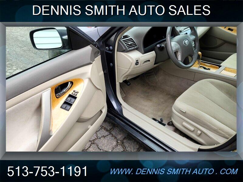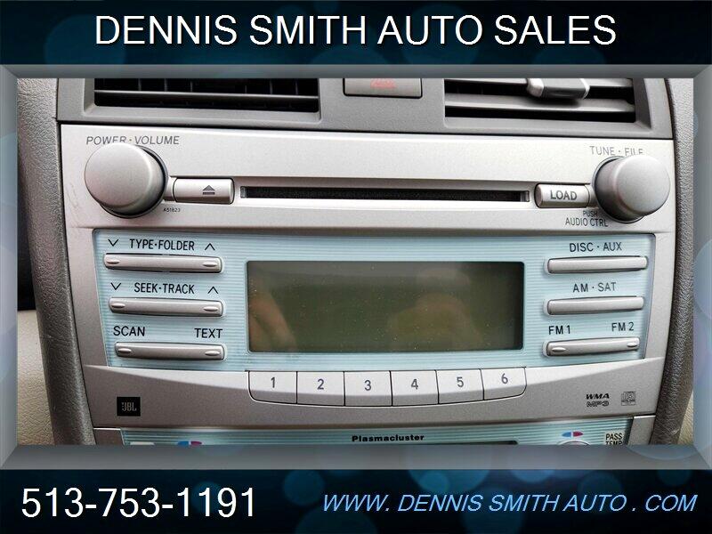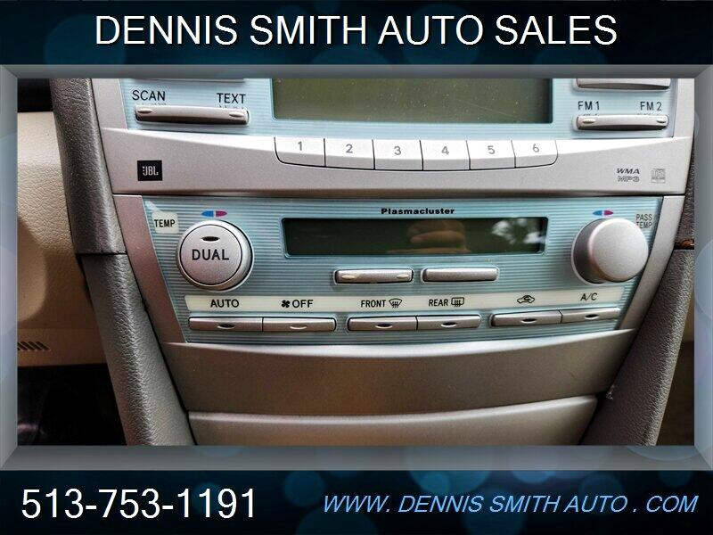 2007 TOYOTA CAMRY XLE, DENNIS SMITH AUTO.COM -- INSTALLED FEATURES: Air filtration, Front air conditioning: automatic climate control, Front air conditioning zones: dual, Rear vents: second row, Airbag deactivation: occupant sensing passenger, Front airbags: dual, Knee airbags: driver, Side airbags: front, Side curtain airbags: front / rear, Antenna type: diversity, In-Dash CD: 6 disc / MP3 Playback, Premium brand: JBL, Radio: AM/FM, Speed sensitive volume control, Total speakers: 8, Watts: 440, ABS: 4-wheel, Braking assist, Electronic brakeforce distribution, Front brake diameter: 11.7, Front brake type: ventilated disc, Rear brake diameter: 11.1, Rear brake type: disc, Armrests: rear center folding with storage, Center console trim: simulated wood, Dash trim: simulated wood, Door trim: simulated wood, Shift knob trim: wood, Steering wheel trim: leather, Cargo area light, Center console: front console with storage, Cruise control, Cupholders: front / rear, Multi-function remote: keyless entry / trunk release, One-touch windows: 1, Overhead console: front, Power outlet(s): 12V front, Power steering: variable/speed-proportional, Reading lights: front / rear, Rearview mirror: auto-dimming, Steering wheel: tilt and telescopic, Steering wheel mounted controls: air conditioning / audio / cruise control / phone, Storage: cargo net / door pockets / front seatback, Sunshade: rear window, Universal remote transmitter, Vanity mirrors: dual illuminating, Clock, Compass, External temperature display, Gauge: tachometer, Trip odometer, Warnings and reminders: low fuel level, Daytime running lights, Front fog lights, Headlights: auto delay off / auto on, Side mirror adjustments: power, Side mirrors: driver side only heated / heated, Moonroof / Sunroof: one-touch open/close / power glass, Child safety door locks, Child seat anchors, Emergency interior trunk release, Rear seatbelts: center 3-point, Seatbelt force limiters: front / rear, Seatbelt pretensioners: front / rear, Driver seat manual adjustments: lumbar, Driver seat power adjustments: height / 8, Front headrests: adjustable / 2, Front seat type: bucket, Passenger seat power adjustments: 4, Rear headrests: adjustable / 3, Rear seat folding: split, Rear seat manual adjustments: reclining, Rear seat type: bench, Upholstery: cloth, Anti-theft system: alarm / vehicle immobilizer, Power door locks, Front shock type: gas, Front spring type: coil, Front stabilizer bar, Front struts: MacPherson, Front suspension classification: independent, Front suspension type: lower control arms, Rear shock type: gas, Rear spring type: coil, Rear stabilizer bar, Rear struts, Rear suspension classification: independent, Rear suspension type: multi-link, Wireless data link: Bluetooth, Spare tire mount location: inside, Spare tire size: temporary, Spare wheel type: steel, Tire prefix: P, Tire Pressure Monitoring System, Tire type: all season, Front wipers: intermittent, Power windows, Window defogger: rear
