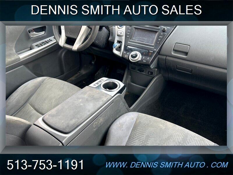 2014 TOYOTA PRIUS V TWO CLEAN ONE OWNER NICE INSIDE AND OUT -- INSTALLED FEATURES: Air filtration, Front air conditioning: automatic climate control, Front air conditioning zones: single, Airbag deactivation: occupant sensing passenger, Front airbags: dual, Knee airbags: driver, Side airbags: front, Side curtain airbags: front / rear, Antenna type: mast, Auxiliary audio input: Bluetooth / iPod/iPhone / jack / USB, In-Dash CD: MP3 Playback / single disc, Radio: AM/FM / touch screen display, Total speakers: 6, ABS: 4-wheel, Braking assist, Electronic brakeforce distribution, Front brake type: ventilated disc, Power brakes, Rear brake type: disc, Regenerative braking system, Armrests: rear folding, Assist handle: front / rear, Cargo area light, Cargo cover, Center console: front console with armrest and storage, Cruise control, Cupholders: front / rear, Multi-function remote: keyless entry / panic alarm / trunk release, One-touch windows: 1, Power outlet(s): 12V cargo area / 12V front, Power steering, Power windows: lockout button, Push-button start, Reading lights: front, Rearview mirror: manual day/night, Steering wheel: tilt and telescopic, Steering wheel mounted controls: air conditioning / audio / phone, Storage: door pockets / front seatback / in floor, Touch-sensitive controls, Vanity mirrors: dual illuminating, Door handle color: body-color, Front bumper color: body-color, Grille color: black with chrome accents, Mirror color: body-color, Rear bumper color: body-color, Rear spoiler: roofline, Rear spoiler color: body-color, Rear trunk/liftgate: liftgate, Window trim: black, Infotainment screen size: 6.1 in., Clock, Digital odometer, Fuel economy display: MPG / range, Trip odometer, Warnings and reminders: low battery / low fuel level, Daytime running lights, Exterior entry lights: approach lamps, Headlights: auto delay off / halogen, Taillights: LED, Side mirror adjustments: manual folding / power, Side mirrors: heated, Auto start/stop, Drive mode selector, Electric motor battery type: nickel-metal hydride, Camera system: rearview, Child safety door locks, Child seat anchors: LATCH system, Crumple zones: front / rear, Impact absorbing seats: dual front, Pedestrian safety sound generation, Rearview monitor: in dash, Safety brake pedal system, Emergency locking retractors: front / rear, Front seatbelts: 3-point, Rear seatbelts: 3-point, Seatbelt force limiters: front, Seatbelt pretensioners: front, Seatbelt warning sensor: front, Driver seat manual adjustments: 6 / height, Driver seat power adjustments: lumbar, Front headrests: 2 / adjustable, Front seat type: bucket, Passenger seat folding: folds flat, Passenger seat manual adjustments: 4, Rear headrests: 3 / adjustable, Rear seat: sliding, Rear seat folding: split, Rear seat manual adjustments: reclining, Rear seat type: 60-40 split bench, Upholstery: cloth, Anti-theft system: vehicle immobilizer, Power door locks: anti-lockout / auto-locking, Hill holder control, Stability control, Traction control, Front shock type: gas, Front spring type: coil, Front stabilizer bar, Front struts: MacPherson, Front suspension classification: independent, Front suspension type: lower control arms, Rear shock type: gas, Rear spring type: coil, Rear suspension classification: semi-independent, Rear suspension type: torsion beam, Wireless data link: Bluetooth, Spare tire mount location: inside, Spare tire size: temporary, Spare wheel type: steel, Tire Pressure Monitoring System, Wheel covers: full, Wheel spokes: 10, Wheels: aluminum alloy, Front wipers: variable intermittent, Power windows: safety reverse, Rear wiper: intermittent, Window defogger: rear