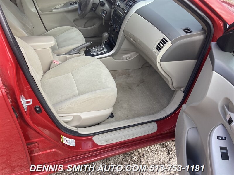 2010 TOYOTA COROLLA LE, LOOKS AND RUNS NICE READY TO ROLL ENNIS SMITH AUTO.COM -- INSTALLED FEATURES: Air filtration, Front air conditioning, Front air conditioning zones: single, Airbag deactivation: occupant sensing passenger, Front airbags: dual, Side airbags: front, Side curtain airbags: front / rear, Antenna type: element, Auxiliary audio input: jack, In-Dash CD: MP3 Playback / single disc, Radio: AM/FM, Satellite radio: SiriusXM, Speed sensitive volume control, Total speakers: 4, ABS: 4-wheel, Braking assist, Electronic brakeforce distribution, Front brake type: ventilated disc, Rear brake type: drum, Cargo area light, Center console: front console with storage, Cupholders: front / rear, Multi-function remote: trunk release, One-touch windows: 1, Power outlet(s): two 12V, Power steering, Reading lights: front, Steering wheel: tilt and telescopic, Vanity mirrors: dual, Door handle color: body-color, Grille color: black, Mirror color: body-color, External temperature display, Gauge: tachometer, Warnings and reminders: coolant temperature warning / lamp failure / low fuel level / low oil pressure, Daytime running lights, Headlights: auto on/off, Side mirror adjustments: manual folding / power, Active head restraints: dual front, Child safety door locks, Child seat anchors: LATCH system, Emergency interior trunk release, Emergency locking retractors: front / rear, Front seatbelts: 3-point, Rear seatbelts: 3-point, Seatbelt force limiters: front, Seatbelt pretensioners: front, Driver seat manual adjustments: 4 / height, Front headrests: 2 / adjustable, Front seat type: bucket, Passenger seat manual adjustments: 4, Rear headrests: 3 / adjustable, Rear seat folding, Rear seat type: 60-40 split bench, Upholstery: cloth, Anti-theft system: alarm / vehicle immobilizer, Power door locks: auto-locking, Stability control, Traction control, Front shock type: gas, Front spring type: coil, Front stabilizer bar: diameter 24 mm, Front struts: MacPherson, Front suspension classification: independent, Front suspension type: lower control arms, Rear shock type: gas, Rear spring type: coil, Rear stabilizer bar: diameter 20 mm, Rear suspension classification: semi-independent, Rear suspension type: torsion beam, Spare tire mount location: inside, Spare tire size: temporary, Spare wheel type: steel, Tire Pressure Monitoring System, Wheel covers: full, Wheels: steel, Front wipers: intermittent, Power windows, Window defogger: rear